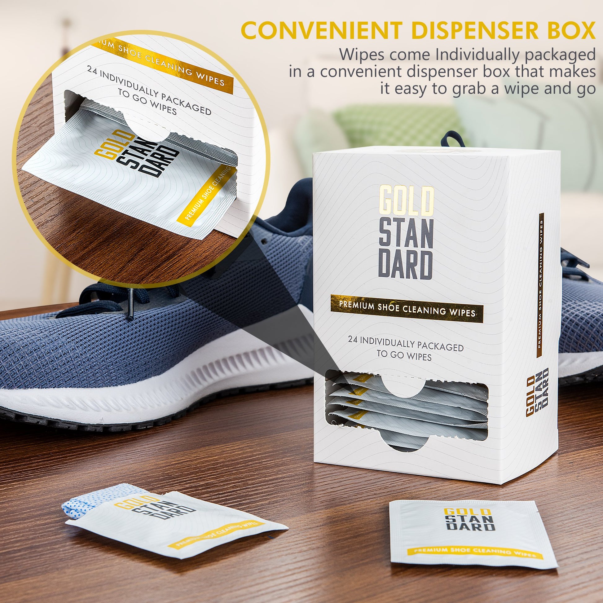 This 24 individually packaged sneaker wipe pack removes dirt and stains from leather, canvas, white sneakers, and more!