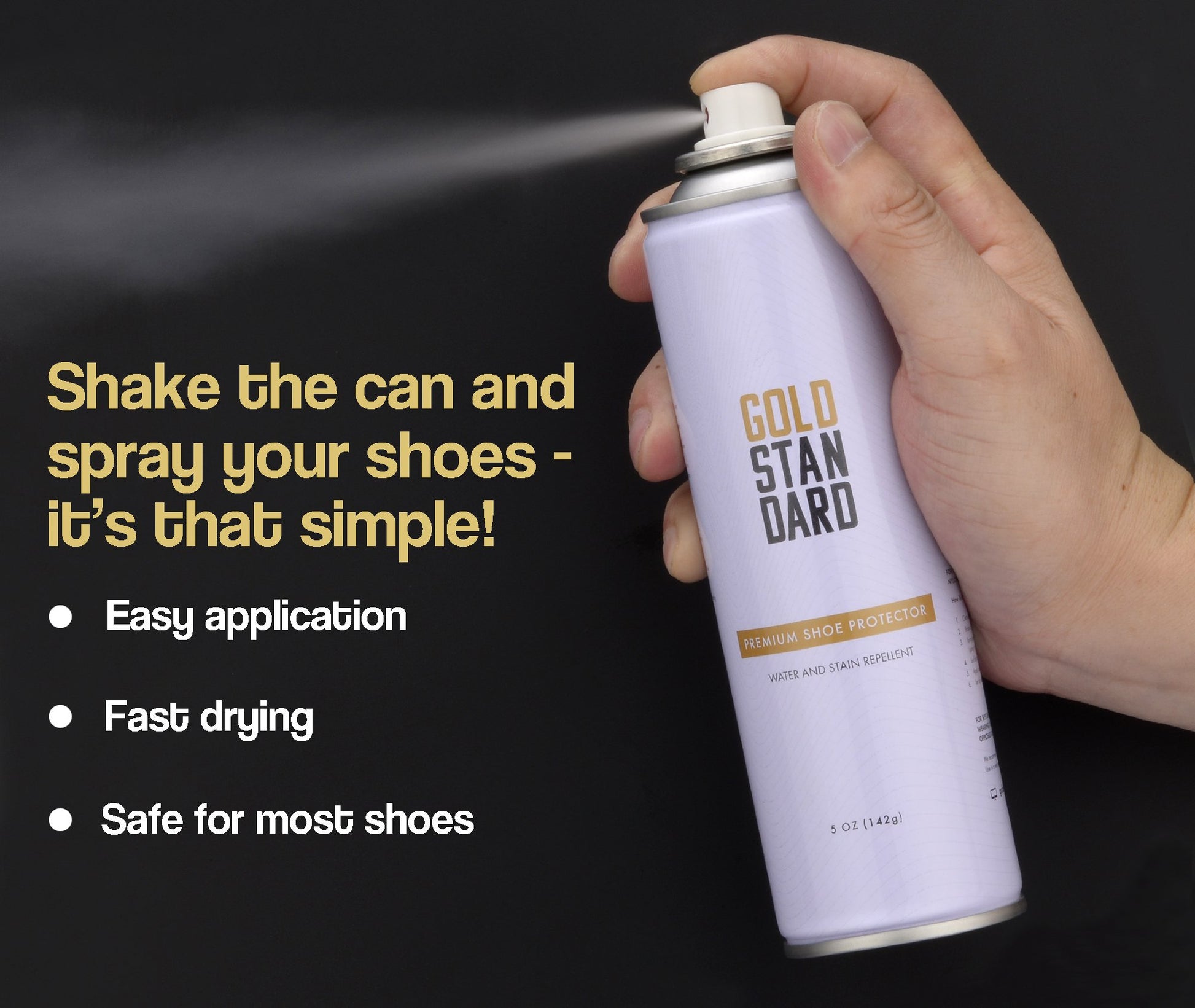 Your Gold Standard protector spray is safe for almost any shoe. Use your water resistant spray for shoes made of leather, canvas, and suede. Always test a small spot on your shoe before applying a full coat.